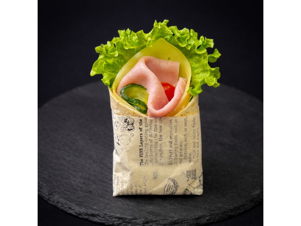 Ľahký a svieži wrap z tortilly plnený šunkou a syrom, doplnený o chrumkavý šalát, čerstvú uhorku a šťavnaté cherry paradajky. Skvelá voľba na rýchlu desiatu, do boxov aj na catering – dobre sa drží, ľahko sa je a chutí „na istotu“.